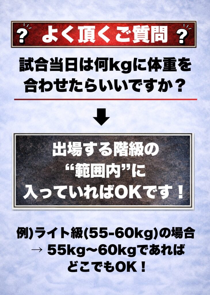 以下「階級表」に示す体重で出場となります。